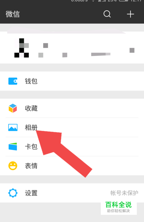 进入微信的“我”的页面后,点击“相册”一栏,进入我的相册页面。