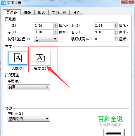 进入到了页面设置的界面当中,进行点击为 横向 的选项。