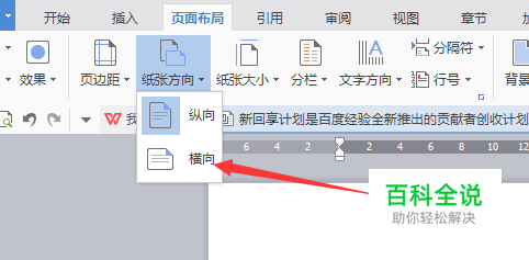 在页面布局的界面当中,进行点击纸张方向下拉菜单选中为 横向 的选项。