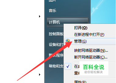 右击“计算机”,从弹出的菜单中选择“管理”项。