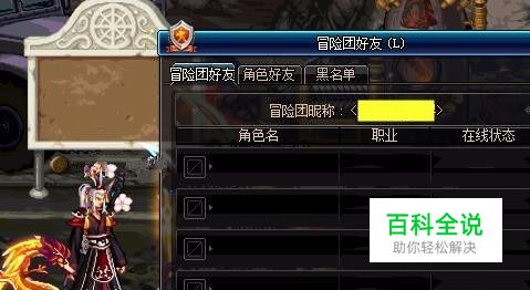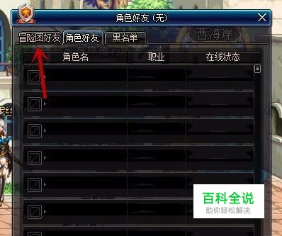 之后我们可以看到自己的角色好友,我们点击上方的“冒险团好友”选项,如图所示。