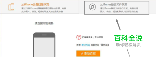 选择软件界面右上角的“从iTunes备份文件中恢复”。