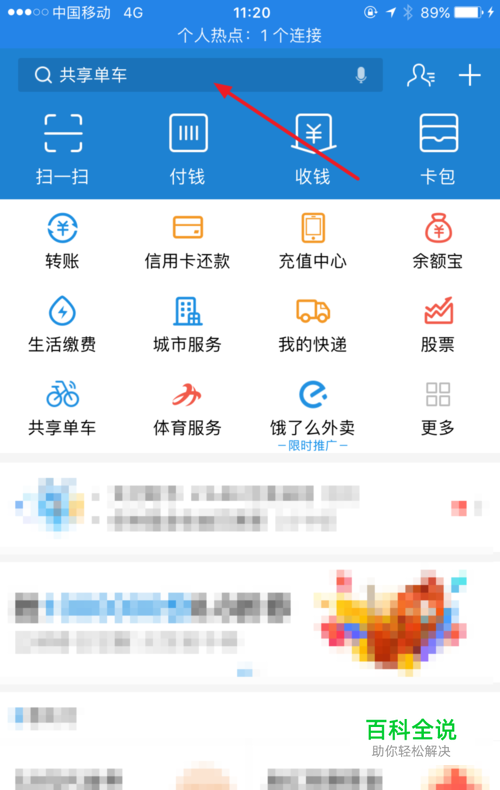 打开支付宝 然后点击首页的搜索栏