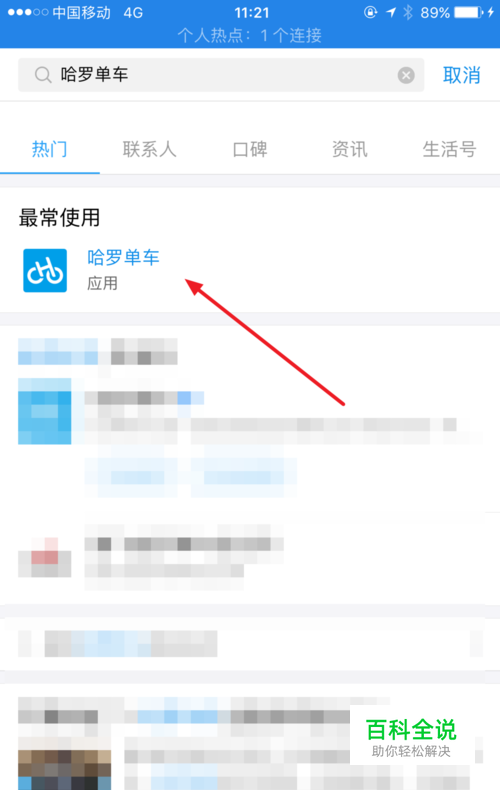 输入 哈罗单车 并点击进入该应用