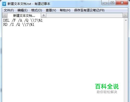 打开文档复制下面内容里面: DEL /F /A /Q \\?\%1RD /S /Q \\?\%1