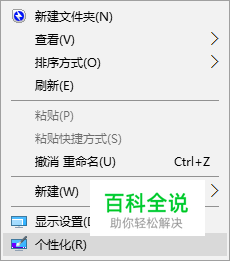 在桌面上右击,在快捷菜单上选择“个性化”选项。