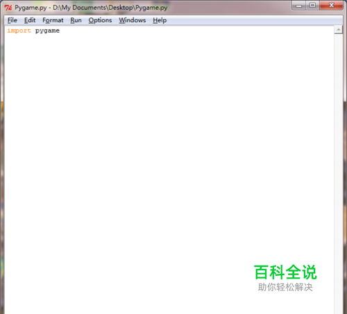 话不多说,我们先导入Pygame模块(请先确保已经安装Pygame,小编已假设你安装了Pygame,如果还没有,可以到它的官方网站下载)。
