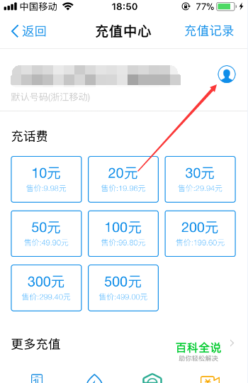 这时在“充值中心”页面我们就能看到家人的手机号码了,然后选中充值的话费金额。