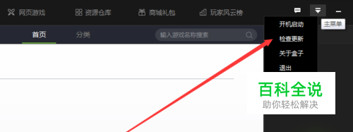 点击右侧位置如图箭头标处,选择检查更新一项。