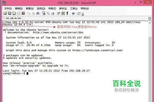 我使用的是“ SecureCRT”通过 SSH2连接到我的 Linux 系统,如下图所示