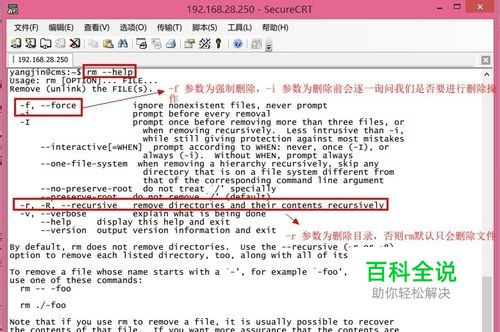 在 Linux下删除目录的命令是“rm”,我们可以在终端命令提示符下输入“rm --help”查看 rm 命令的具体使用方法。 我们常用的几个参数为“-f -i -r -v” -i 删除前逐一询问确认。这个参数有一个好处,当在删除大量文件或目录的时候,可以防止我们误操作删除的文件或目录。 -f 即使原档案属性设为唯读,强制删除,系统不会逐一让我们确认。 -r 将目录及以下之档案文件一并删除。注意:如果 rm 不带此参数,是不能删除目录的。 -v或--verbose 显示指令执行后的结果信息。