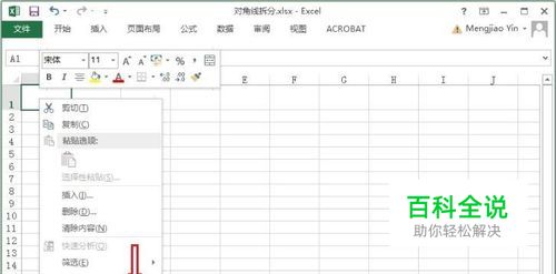 二维表格中,通常用行和列分别表示某项事物的不同方面,综合起来构成对事物的完整描述,为了便于向第三方进行介绍,通常在表格左上角表明行和列所表示的信息,这就需要将单元格按对角线分成两部分,这里介绍一种把EXCEL单元格按对角线分成两部分的方法。