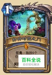 时空之门,法师新版本的任务橙,新版本后天梯出现一大波哀绿安东尼任务法,凑齐一套我就赢了,但是理想很丰满,现实很骨感,任务法节奏还是偏慢,随机成分比较大,更由于脏鼠的流行经常还没凑齐一套关键牌就没了,所以这张卡是不推荐合成但是是张不错的卡。
