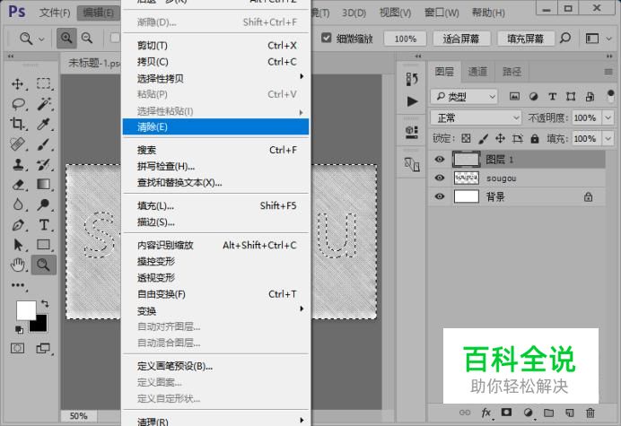 按住Ctrl键,大家文字图层的缩略图调出选区;然后,反选选区。