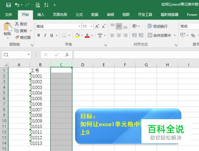 我们要用excel制作一列工号,工号的第一个数字是0,现在在C列做一列同样的工号