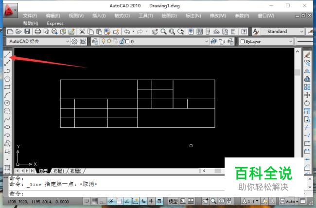 进入cad2010绘图界面中,利用直线命令,绘制出标题栏框图