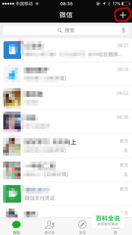 打开微信,然后点击右上角的加号,进入下一界面。