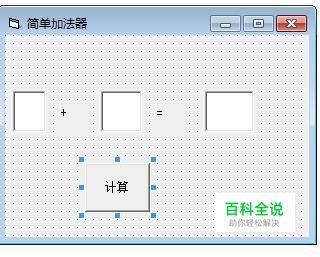 编写一个Command1的单击事件,代码如下: Private Sub Command1_Click() Text3.Text = Text1.Text + Text2.Text End Sub