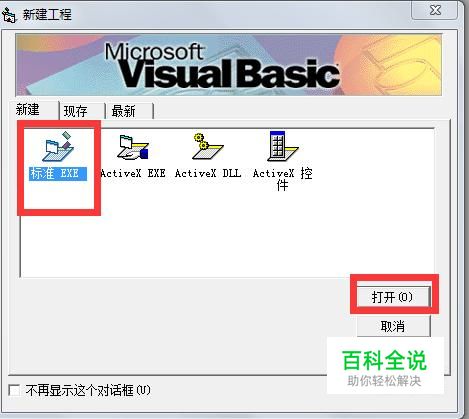 打开VB6.0,新建一个工程EXE,点击打开