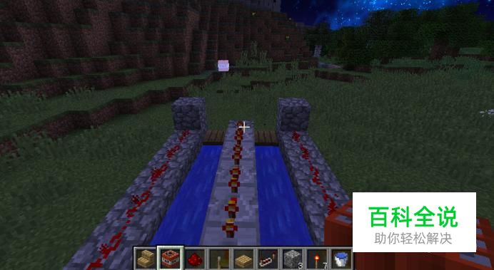 首先用圆石做成这样一个渠道,渠道不要超过八格长。