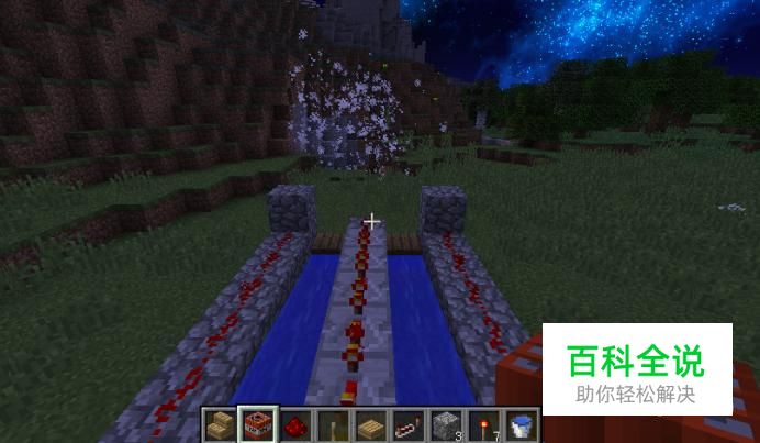 之后在渠道两边圆石上铺上红石。