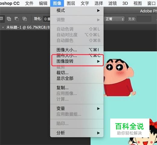 点击菜单栏上的‘图像’--->‘图像旋转’