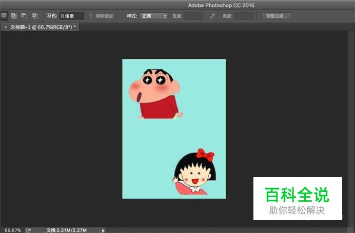 如图,如果想把图像上的蜡笔小新做旋转,我们得先选择小新,按键盘上的ctrl+c, ctrl+v,复制一个图层出来