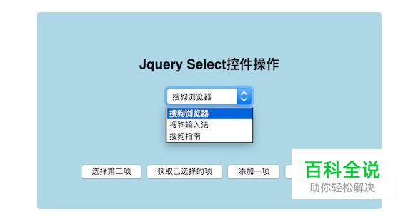 第三个按钮的逻辑,添加一个下拉框的选项,用append方法,直接加上option项就行, $("#sel").append("<option value='4'>搜狗地图</option>");