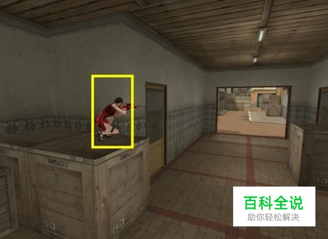 B门木箱卡B大道。从墙上可以跳上B门的箱子上。敌人第一时间不会发觉这里。