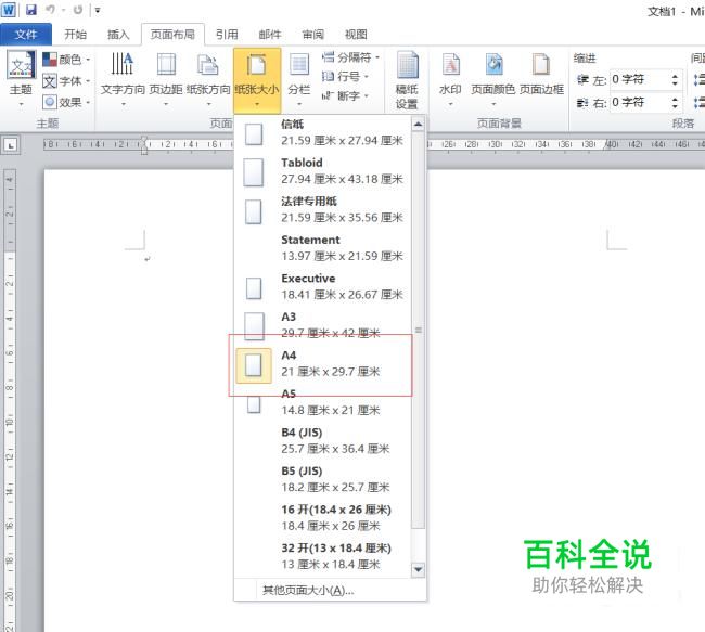 首先打开world文档,选择【页面布局】中的【纸张大小】为A4纸