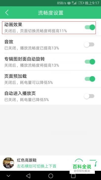点击关闭后,如图所示,到这里,我们就完成了QQ音乐APP清理占用空间及关闭动画效果的操作。