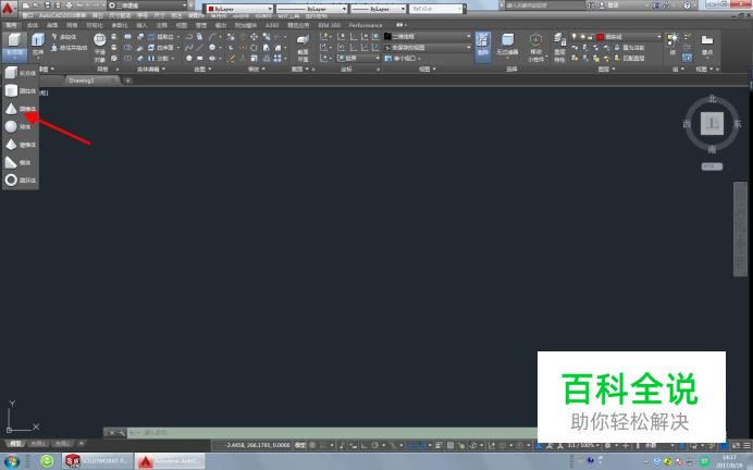 在下拉菜单中找到圆锥体这个命令-点击