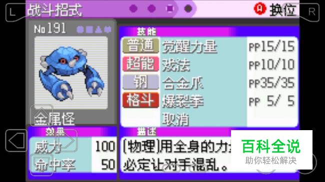 爆裂拳是格斗系技能,技能威力100,打中必然混乱,就是命中有点尴尬,才50%。这是个定点学习的技能,在绿岭市可以学到,不过第一次去绿岭市需要从水静市出发,我们先来到水静市。