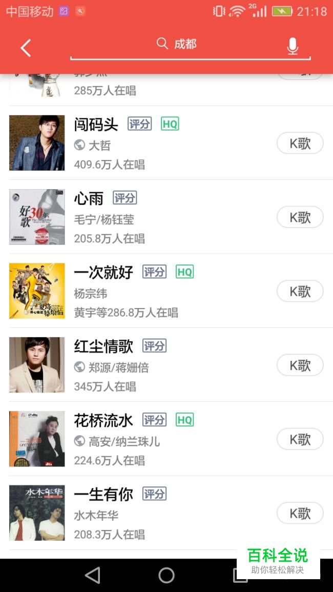搜索一首或直接选择一首自己喜欢的歌曲K歌。