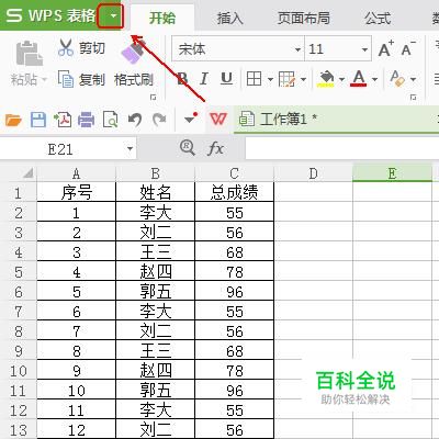 打开wps表格,在其左上角找到“wps 表格”的倒三角并点击它。