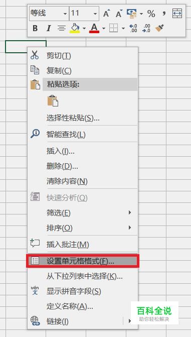 方法一:打开excel并且选择好需要输入身份证号的单元格,鼠标右键点击单元格,在菜单内选择“设置单元格格式”选项