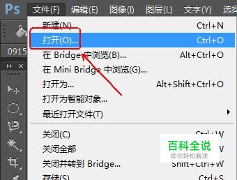 菜单栏:“文件”-“打开”,找到我们的素材(照片)并打开。