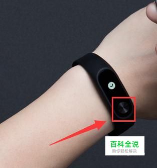 戴上小米手环后,点击图中按钮数次,直到屏幕上出现心形符号。