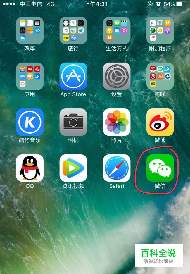 我们聊下如何分享朋友别人的链接,在别的主页分享链接也是类似的,首先我们打开手机进入主界面找到微信这款软件并点击-登录。