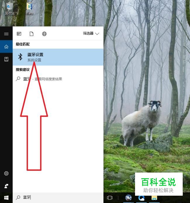 在电脑的搜索框内直接输入蓝牙进入蓝牙设置。这里以win10系统为例。