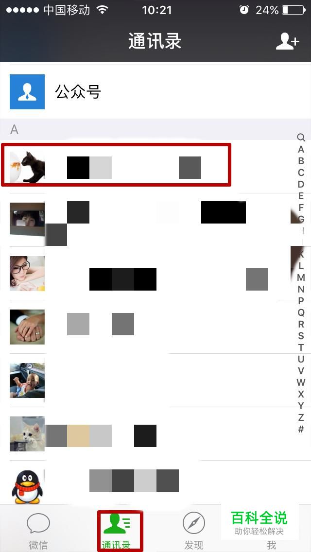 打开微信,点击下方的“通讯录”,然后找到你要设置黑名单的人;