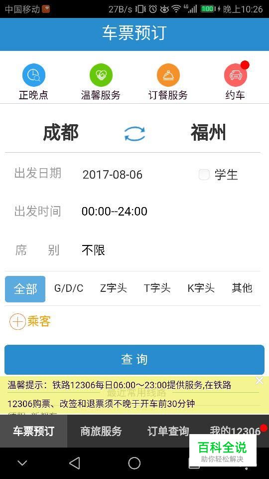 回到车票预定处,选择出发日期车次。