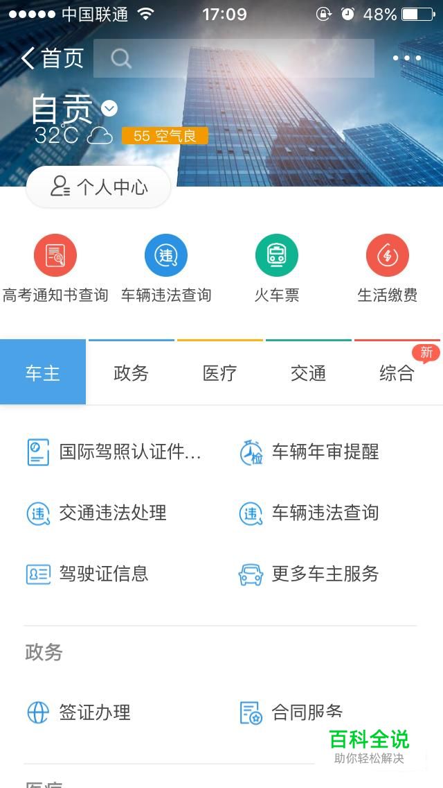 点击“生活缴费”,勾选自己所在的城市,选择自己所需要的缴费类型。