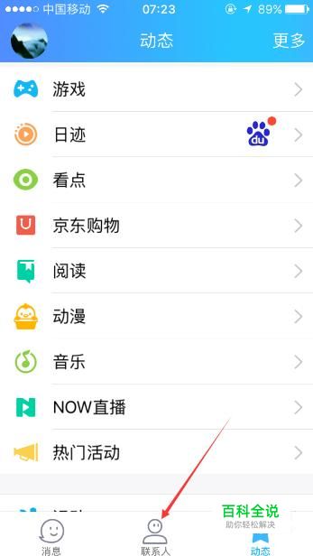 首先登录手机QQ账号,然后点击手机QQ页面中的“联系人”按键。