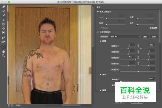 进入液化界面,在左侧选项栏中选择第一个“变形工具”