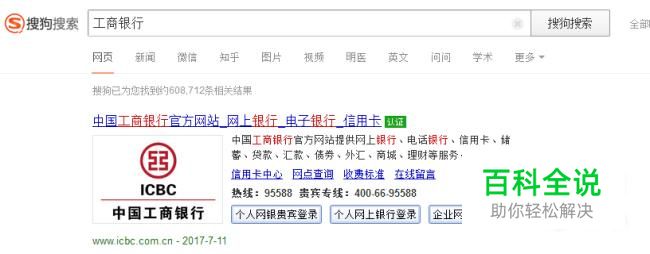 首先在电脑上查询方式,浏览器搜索“工商银行”