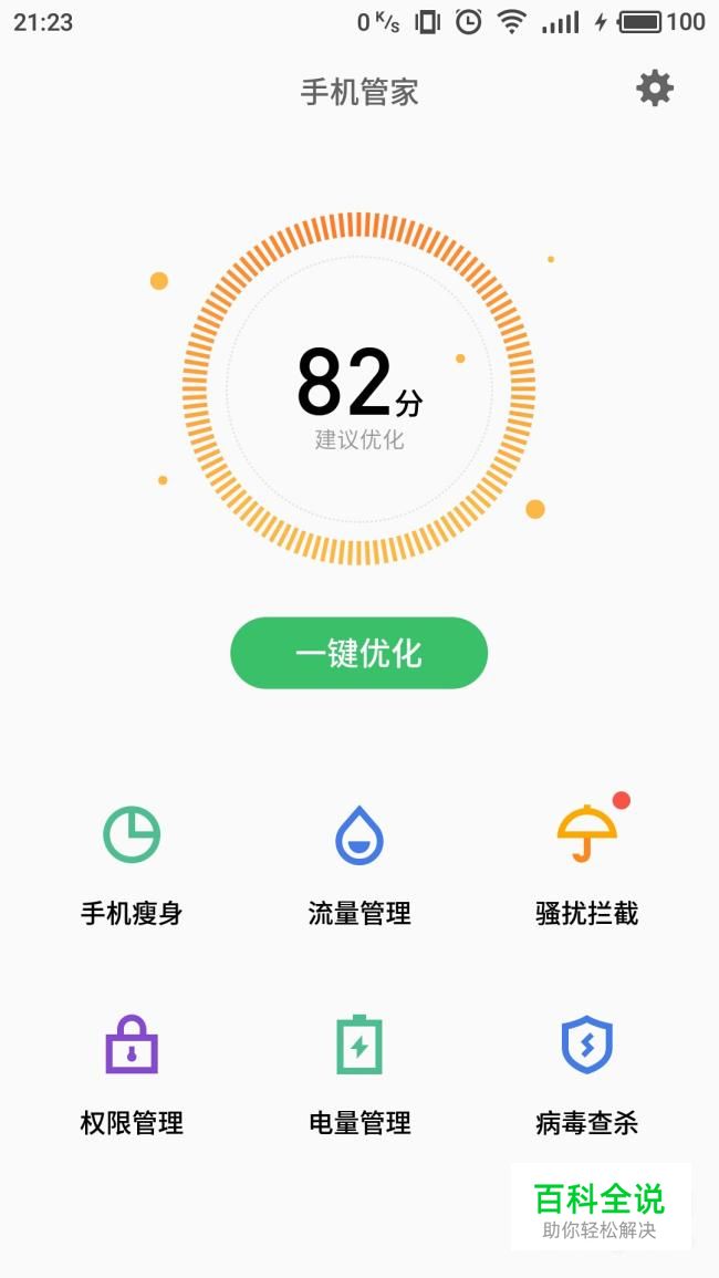 进入手机管家界面,选择“一键优化”自动清理手机中的一些垃圾文件。