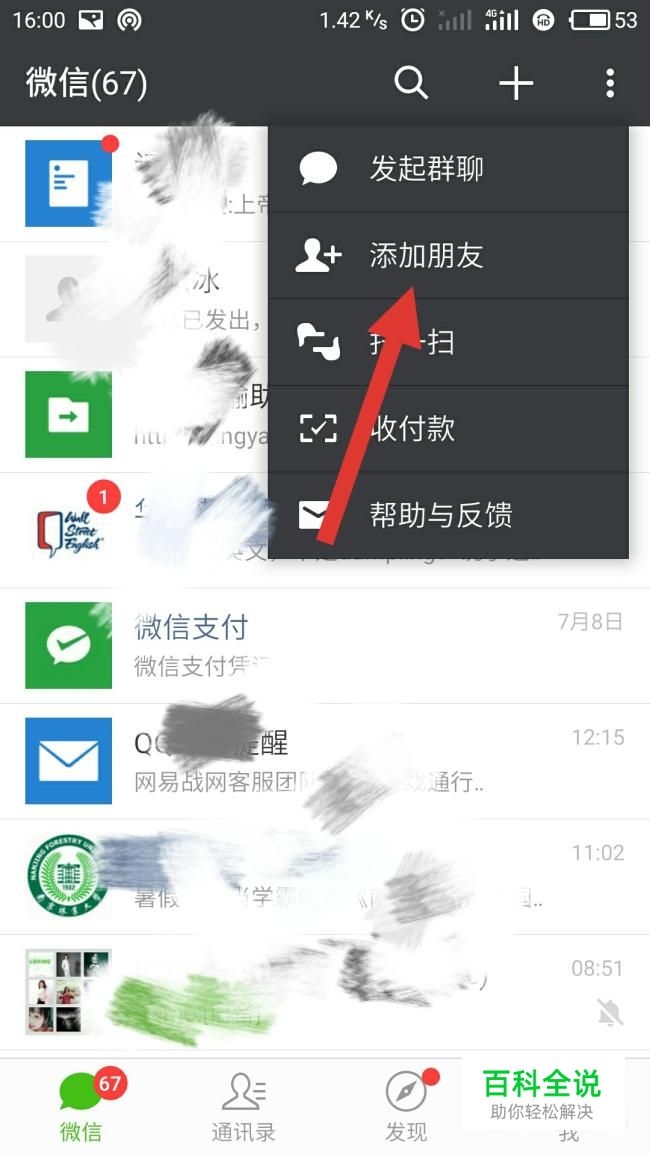 点击右上角的添加按钮,选择添加朋友。