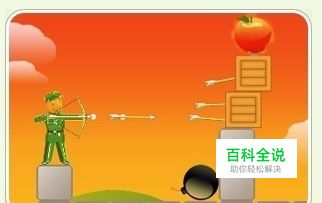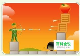 鼠标点击屏幕拖动控制发射方向和力度,松开左键发射弓箭,不要射中炸弹哦。