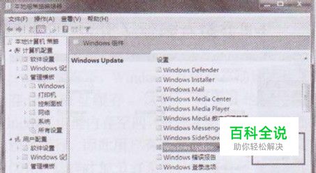 1、打开“本地组策略编辑器”窗口,在左侧窗格中依次展开相应选项。在“Windows组件”列表框中,选择Windows Update选项, 如图1所示。